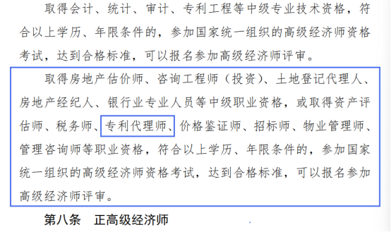 近年來隨著越來越多的專利代理師報名參加知識產(chǎn)權(quán)師考試,而中級知識產(chǎn)權(quán)師考試中的經(jīng)濟基礎(chǔ),對考試者來說還是比較有難度的;但專利代理師從事專利代理等知識產(chǎn)權(quán)工作也要通過嚴格的考試、實習(xí)和執(zhí)業(yè)才能正式進入知識產(chǎn)權(quán)服務(wù)行業(yè)。況且知識產(chǎn)權(quán)師的工作更需要有專業(yè)基礎(chǔ)和專業(yè)背景的人員,因此不少省市已明確規(guī)定持有“專利代理師”資格的人員符合一定條件可以直接參評“高級知識產(chǎn)權(quán)師”職稱。此舉措不僅是對專利代理師資格的認可,也是吸引更多的優(yōu)秀專業(yè)人員進入到知識產(chǎn)權(quán)師的職稱隊伍中。
